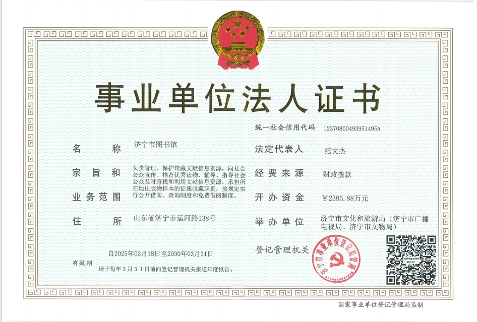 (c) Copyright 2017 济宁市图书馆. All Rights Reserved. 鲁ICP备09084741号-4 鲁公网安备 37089902371071号