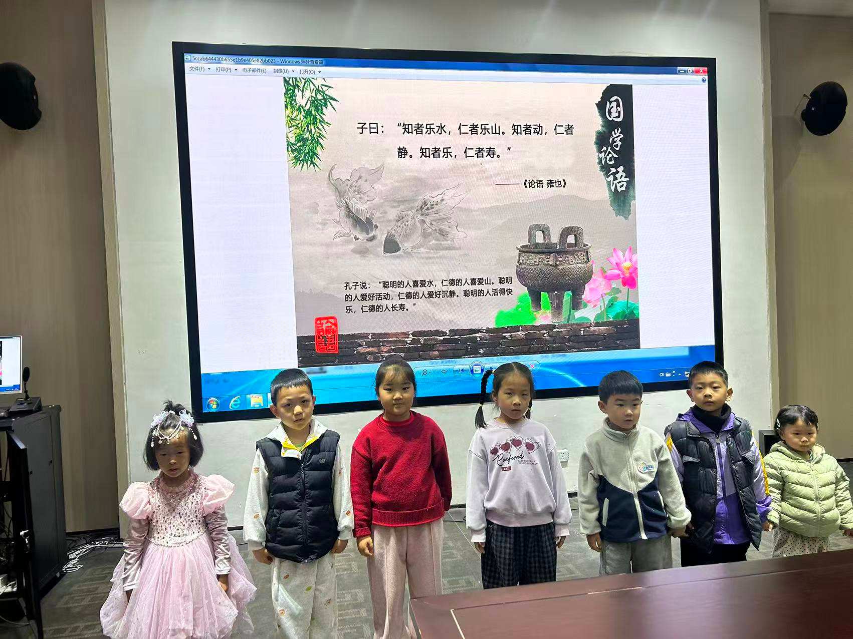 活动在孩子们的温情分享中开启。大家讲述与“帮助他人”“友好相处”相关的小故事:有的回忆和小伙伴分享玩具的快乐,有的讲述看到别人遇到困难主动帮忙的经历,还有的分享和家人一起做公益的感动瞬间。童真的讲述中传递着对友善与和平的朴素理解。在欢乐的互动游戏环节,我们开展了“和平主题萝卜蹲”游戏。孩子们分组代表“白鸽”“橄榄枝”“和平花”“友谊桥”等和平元素,在欢声笑语中蹲起呼应。游戏不仅锻炼反应能力与团队协作,更让和平理念在快乐中自然传递。通过绘本《铁丝网的小花》,孩子们走进了二战时期一个感人至深的真实故事。在铁丝网隔离的世界里,一朵小花跨越了仇恨与偏见,传递出人性中的善良与希望。孩子们被故事深深触动,认识到:即使在最艰难的时刻,爱与和平的种子依然可以生根发芽;每个人都可以成为传递友善的“小花”。在“拼拼卡”手工环节,孩子们用色彩缤纷的拼贴卡片,创作出自己心中的“和平心愿”。有的拼出白鸽衔枝飞翔,有的组合出世界儿童手拉手,还有的用爱心图案表达“世界和平”的美好祝愿。在剪贴与创作中,孩子们不仅锻炼了动手能力,更将对和平的理解融入作品之中。结合“珍爱和平”的主题,老师分享了《论语》中的深刻智慧: