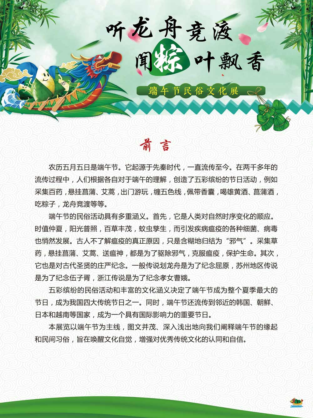 听龙舟竞渡 闻粽叶飘香——端午节民俗文化展