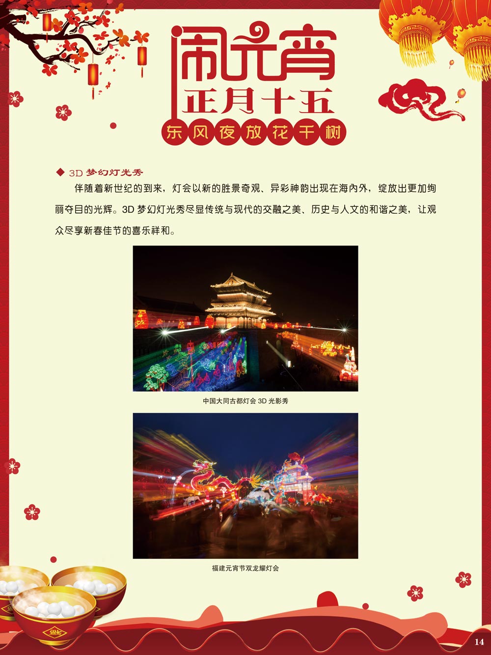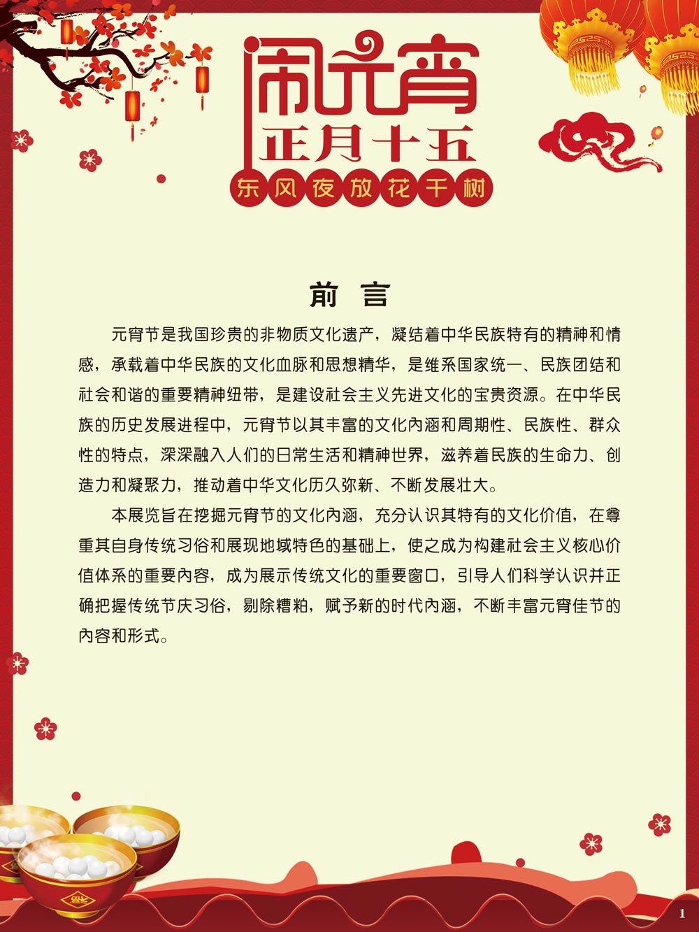 《东风夜放花千树——正月十五闹元宵》主题展览分为五个单元:“源远流长 瑰丽传说”“追星揽月 向往圆美”“灯火辉煌 乐中斗智”“龙腾狮跃 共庆新春”“诗意融融 岁月如歌”。策展团队特别策划了首批国家级非物质文化遗产——秦淮灯会、趣味猜灯谜画谜、非遗项目——晓云绣花龙、软萌创意汤圆展示四大板块,致力于为观众呈现一个充满年味、欢天喜地的元宵佳节,欢迎社会各界朋友前来观展!