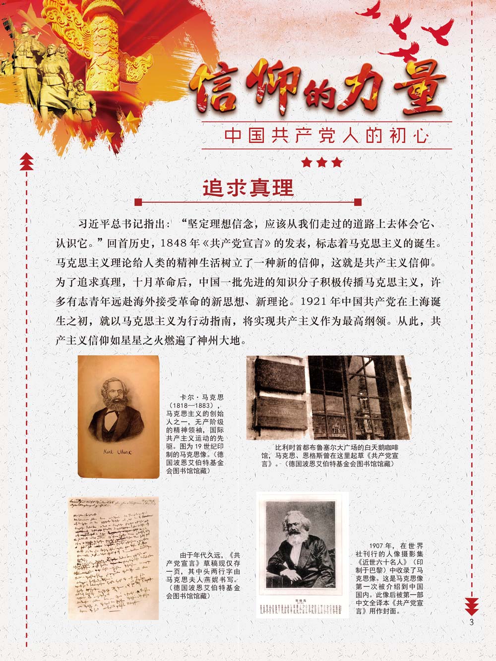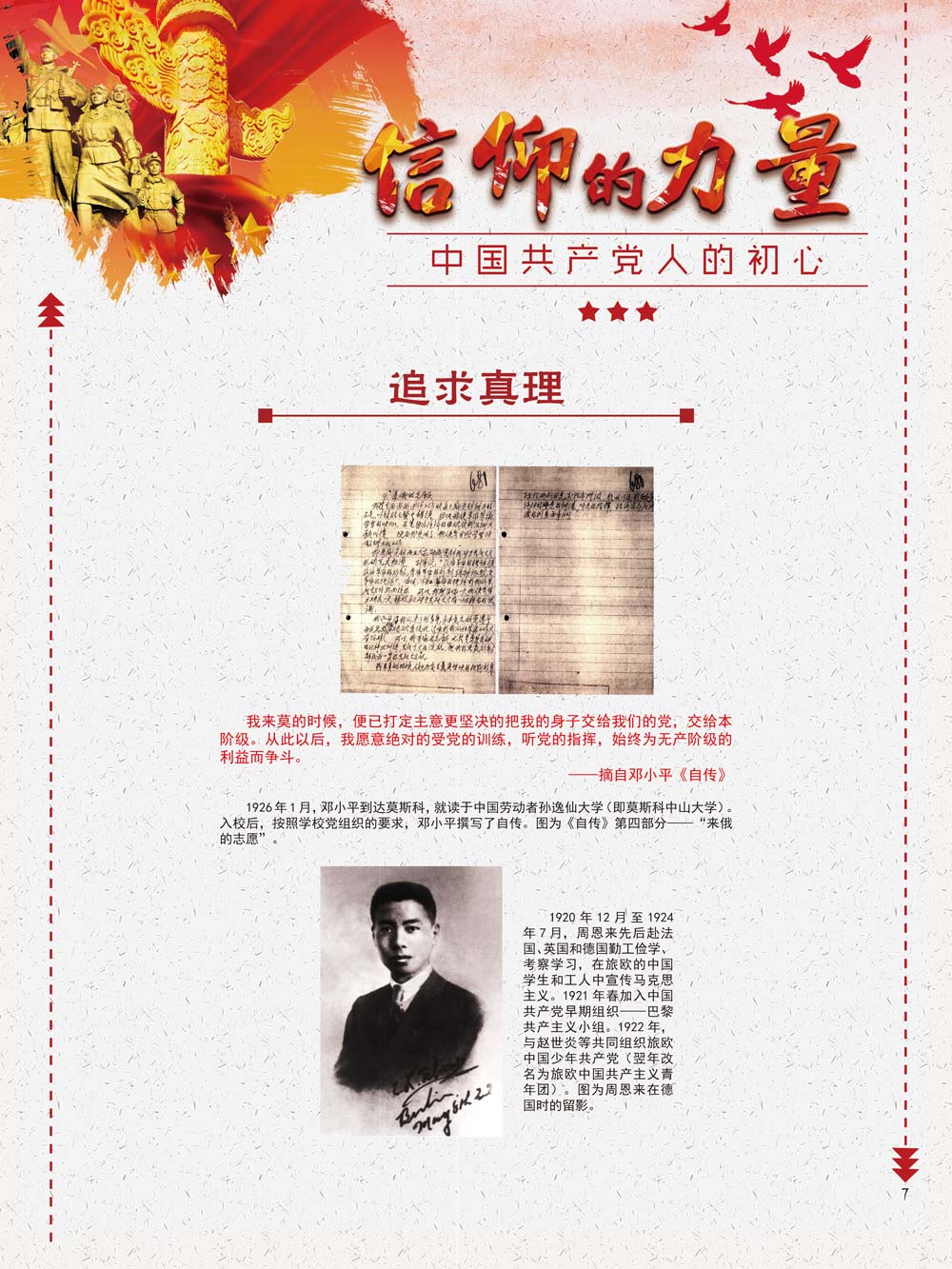 太阳升起,光明普照。2019 年7 月1 日,我们迎来了中国共产党的98 岁诞辰,为隆重纪念党的98 岁华诞,特举办此次展览。展览以中央档案馆和上海市档案馆馆藏红色珍档为主体,以老一辈无产阶级革命家和革命先辈追求与坚守马克思主义信仰为主线,通过“追求真理”“坚定信念”“严守党纪”“勤政为民”“修身齐家”五个部分,集中展示中国共产党人对理想信念的执着追求和无畏奋斗、无私奉献、无悔牺牲的赤子之心与家国情怀。 历史是最好的教科书,中国革命历史是最好的营养剂。历史的足音穿越时空、 启示未来,必将激励一代又一代中国共产党人初心如磐,自觉做共产主义远大理想和中国特色社会主义共同理想的坚定信仰者和忠实实践者。 信端全景展:http://ls.kanzhanlan.cn/wx/010106/41/index.html