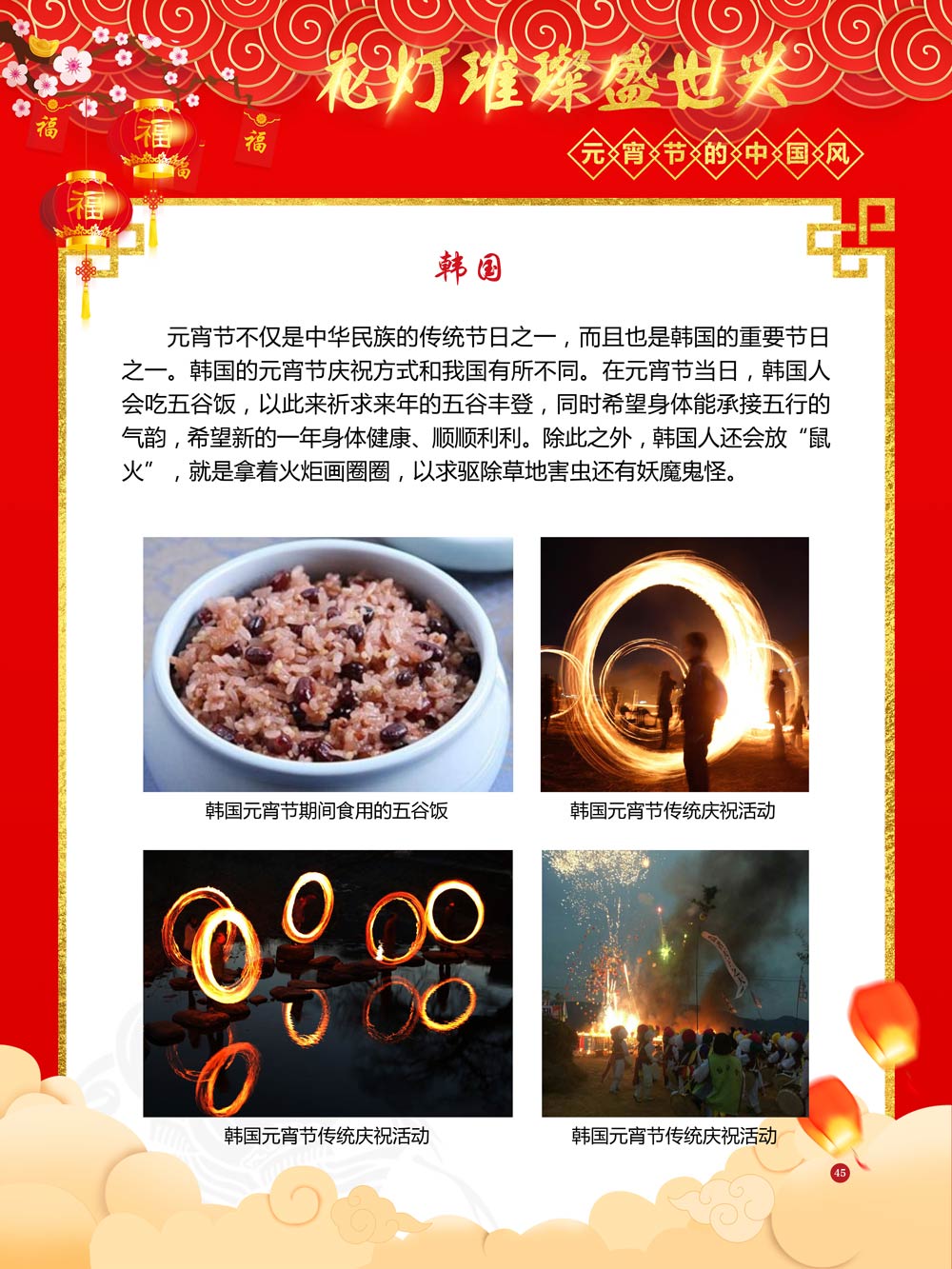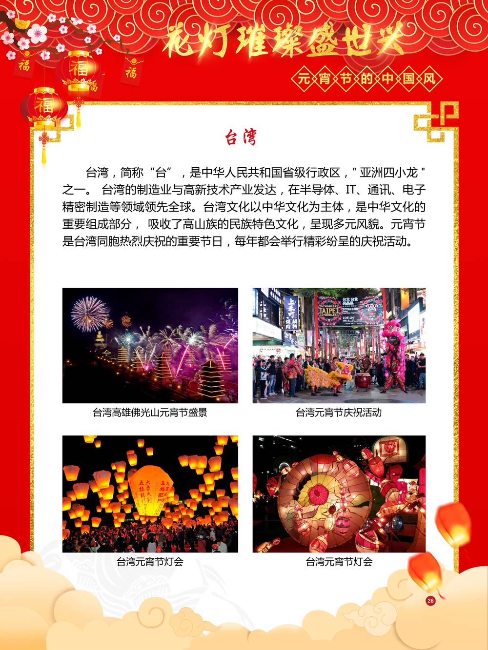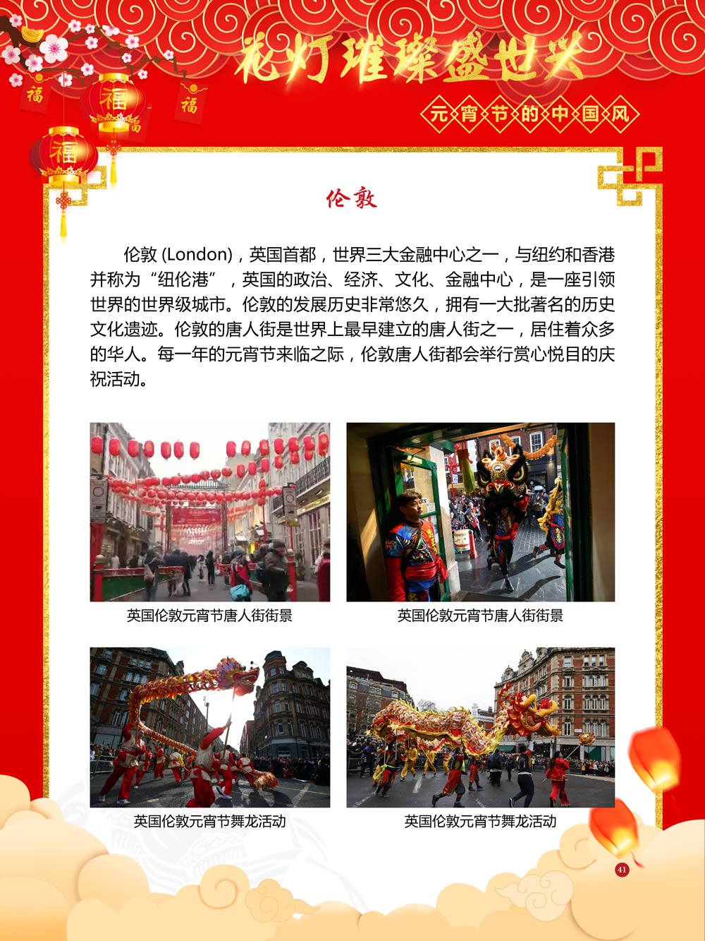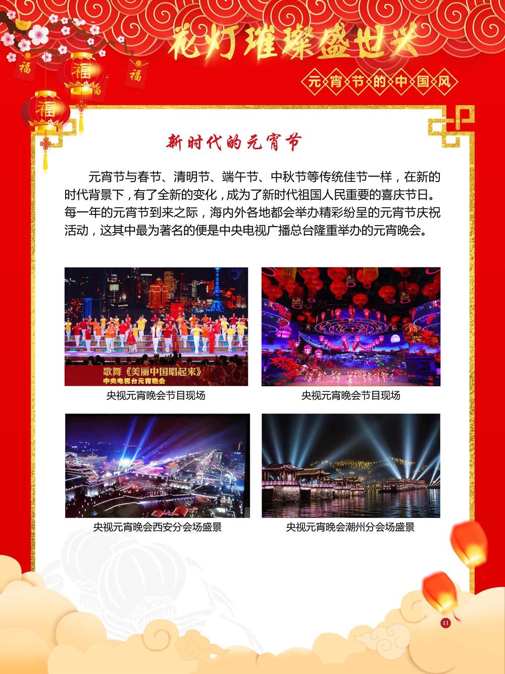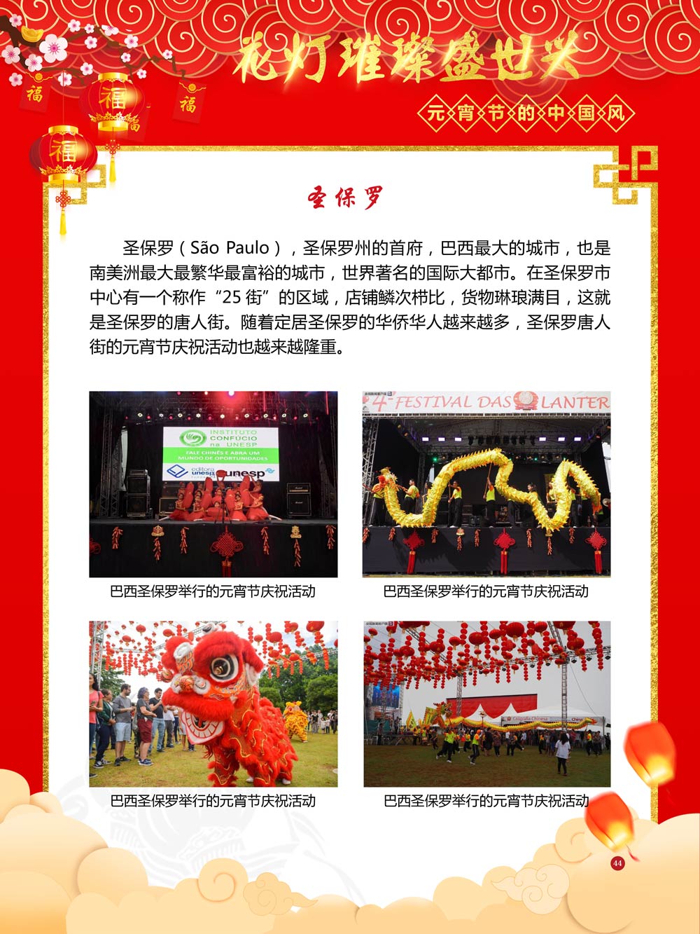 过完春节过十五,正月十五闹元宵!一年一度的元宵节又要喜气洋洋的登场了!值此佳节来临之际,我们首先给大家拜一个晚年,同时祝愿大家元宵节快乐!元宵节的历史源远流长,形成了其富有特色的节日风情,是中华民族的重要传统节日之一。 随着全球化时代到来后,全世界的各大文明形态和多种多样的文化迎来了有史以来最大的深度融合。中华传统文化也乘着文化全球化的快车,通过遍布世界各地的华侨华人传播到了世界上的每一个角落。元宵节也在此背景下,由一个中华传统节日逐渐的发展为一个具有浓重现代多元气息的世界节日。元宵节的庆祝活动也不在仅仅局限在中华文化圈内,而是逐渐地扩大到了更大的国际范围中。越来越多的世界各地居民领略到了我国元宵节独特的魅力风采,而且也在逐渐地加深理解元宵节蕴含的丰富内涵。各色皮肤和各种语言的人们越来越积极地加入到庆祝元宵节的队伍中来,丰富多彩的国外文化也随之自然融入到传统的中华元宵节文化中去。 今天,庆祝元宵佳节的活动已经在世界各地如雨后春笋般出现,元宵节已经成为了富有鲜明中国风的重要东方文化符号。我们将通过本展为广大观众朋友们呈现这一幅幅张灯结彩且充满欢声笑语的精美画卷。