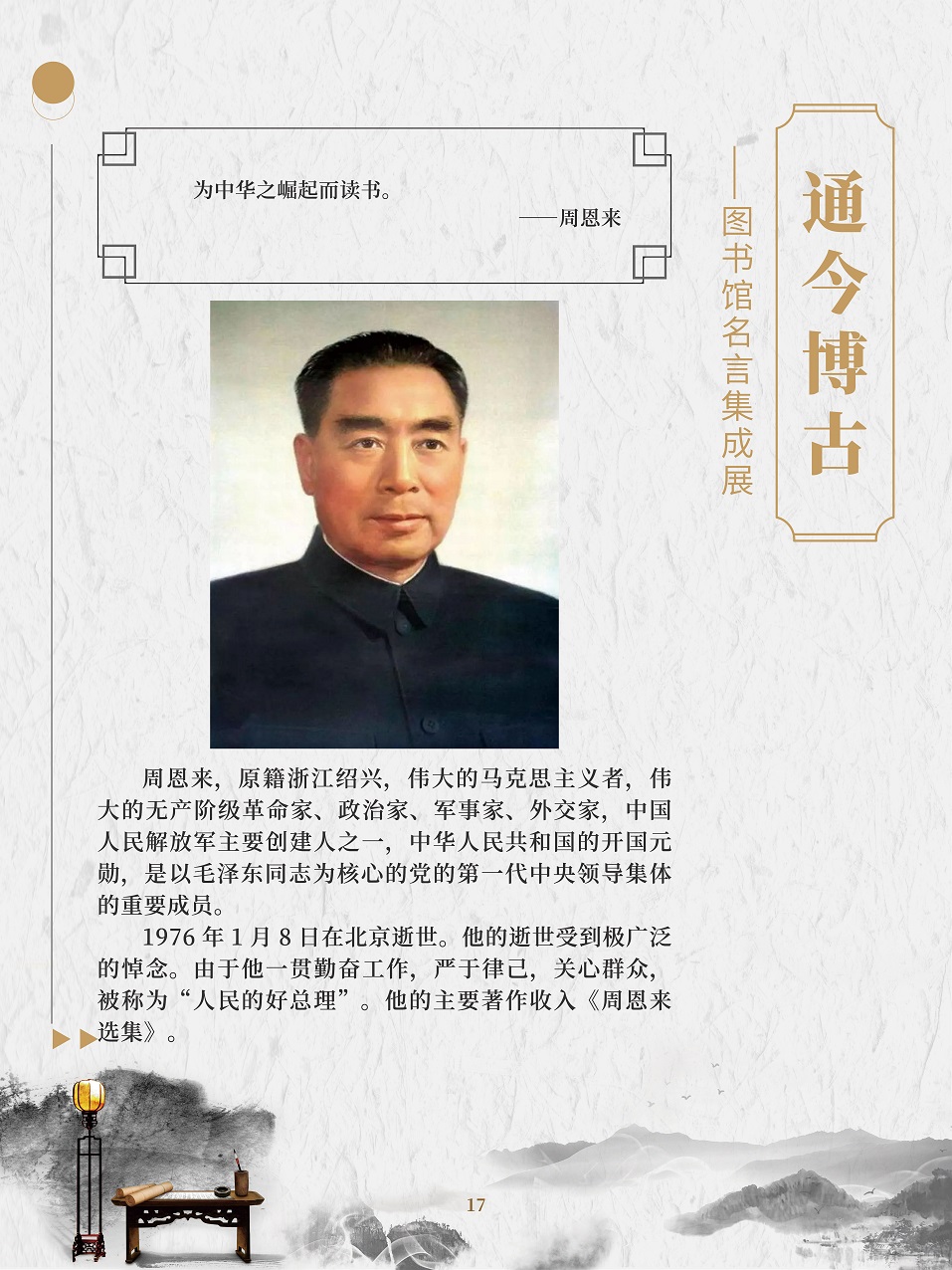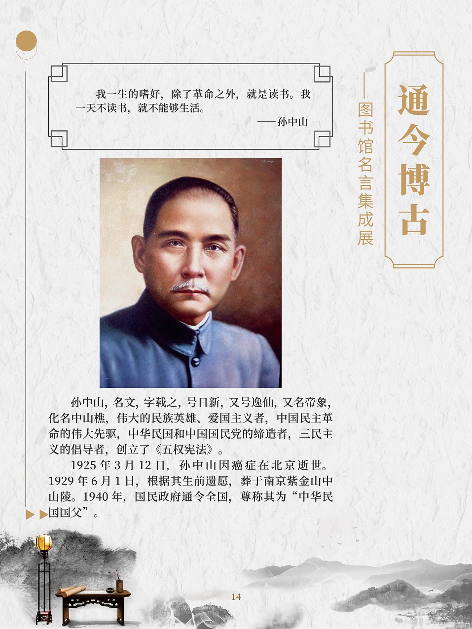 名人名言是人类思想的精华,智慧的结晶。面对书海浩瀚,语林苍茫,感悟名人名言,对于每个人来说,都是明智的选择。一句句铿锵有力的名言,就是一个个思想火花,可以点燃青春的热情,激发人们的奋斗精神;一句句闪烁着智慧光芒的名人名言,就像一座座人生的灯塔,照耀着人们前进的道路。 在2020年“4·23世界读书日”来临之际,为了倡导全民阅读,引导广大群众逐步形成爱读书、多读书、读好书的阅读习惯,特举办此展览。展览以“读书与学习”为主题的名人名言为主线,让广大观众领略古今中外名人名言的内涵和风采。 “最是书香能致远,唯有读书方宁静”,建设学习型社会应该从阅读开始。一个善于阅读的人一定会成为有前途的人,一个善于阅读的民族一定会成为有希望的民族,一个善于阅读的国家一定会成为不断发展壮大的国家!
