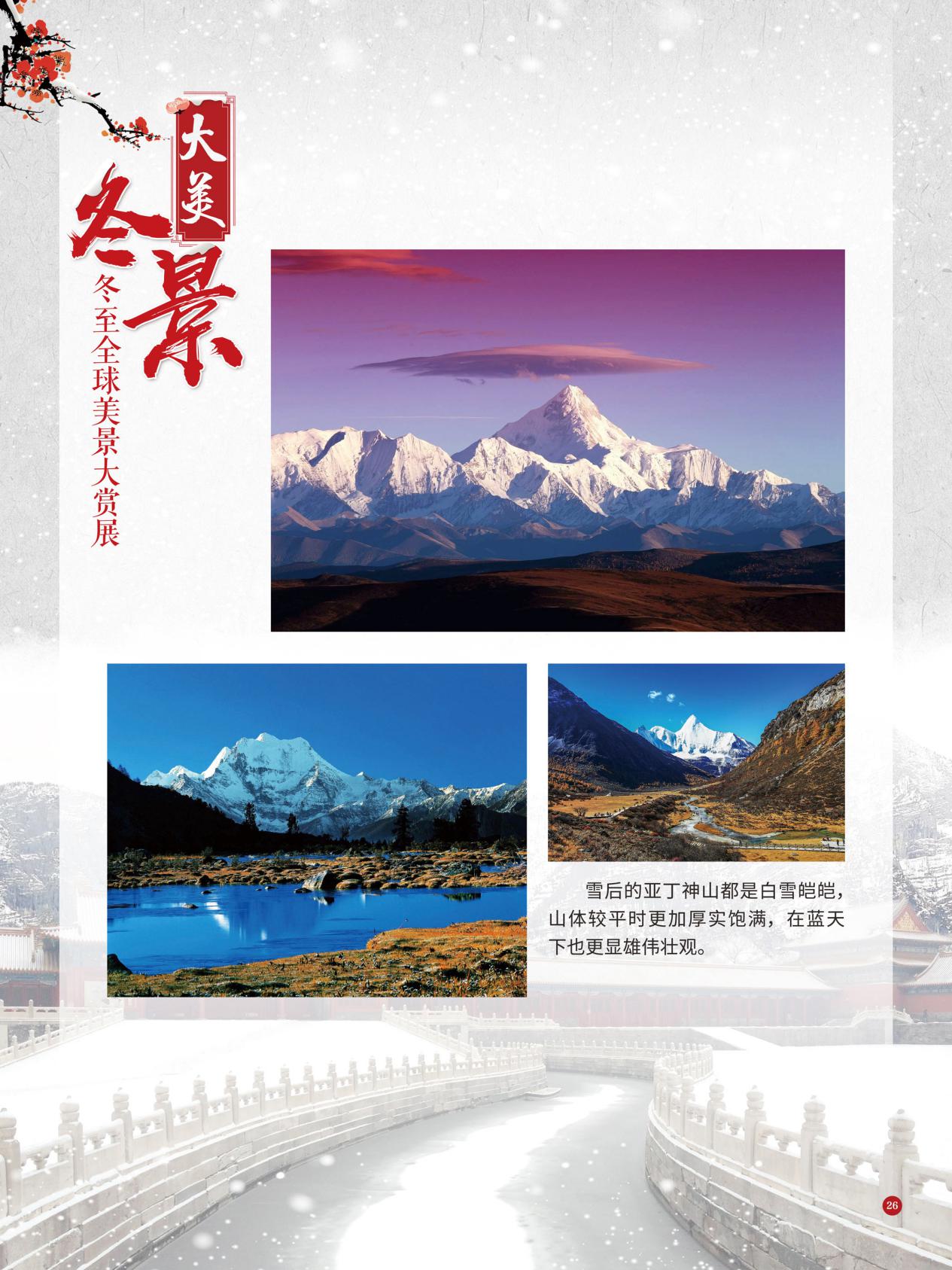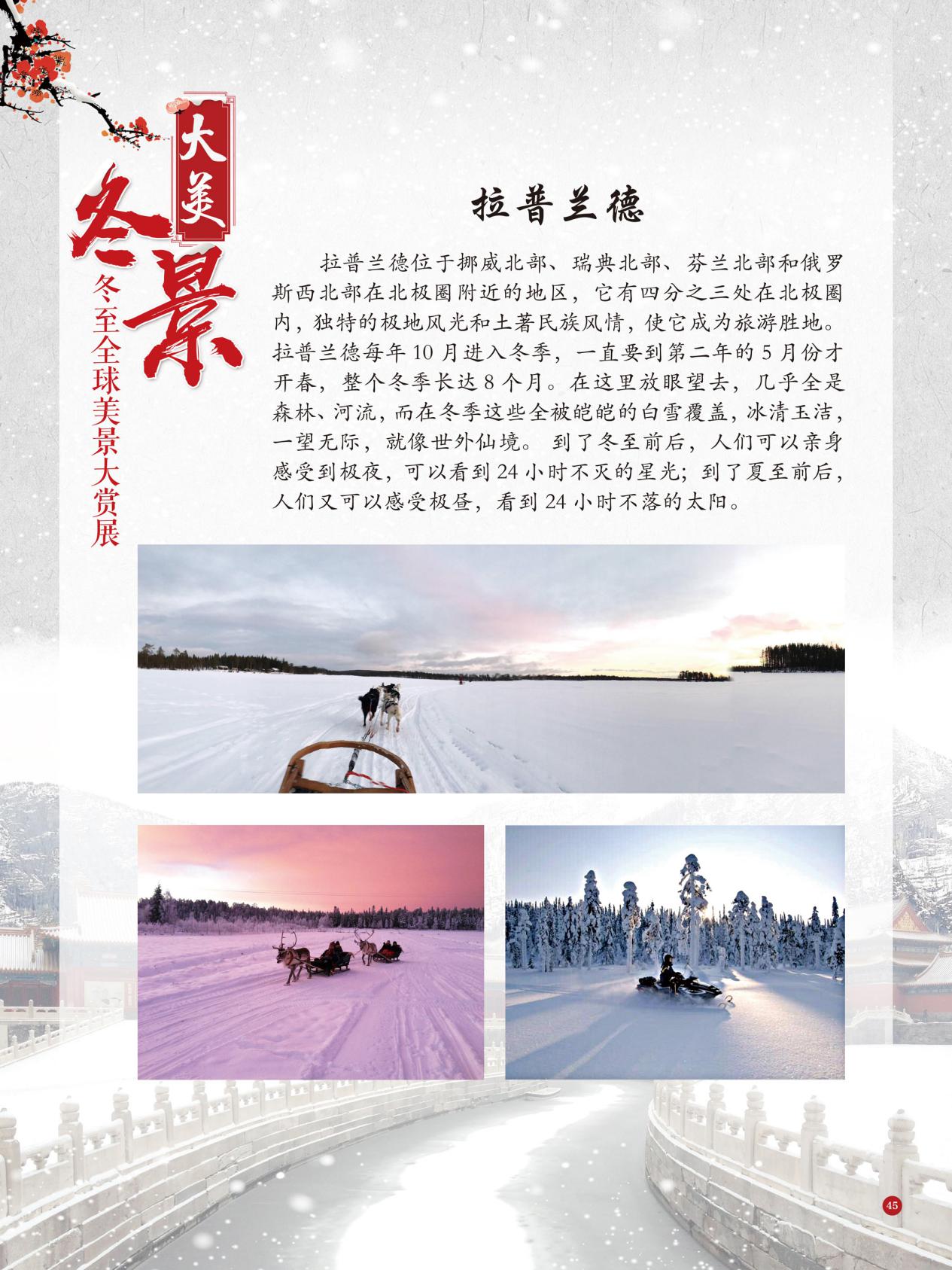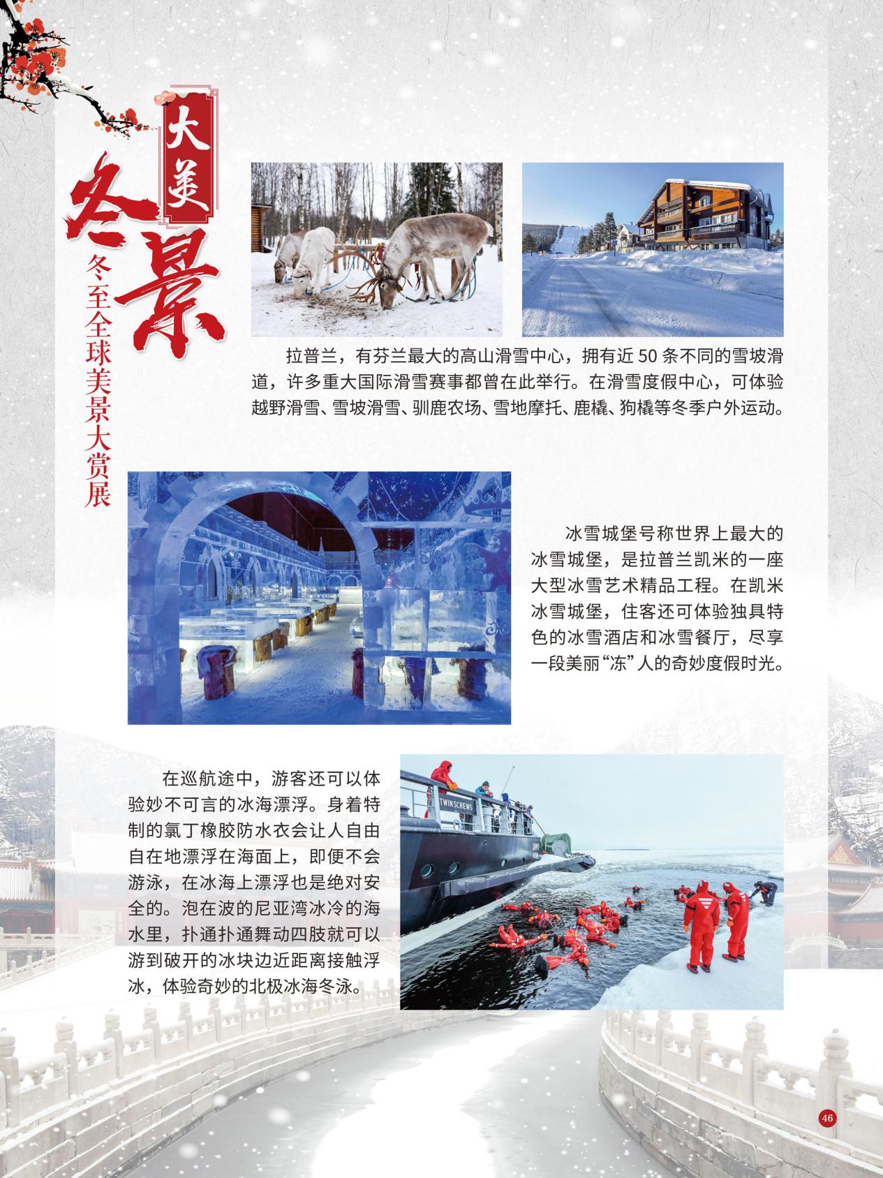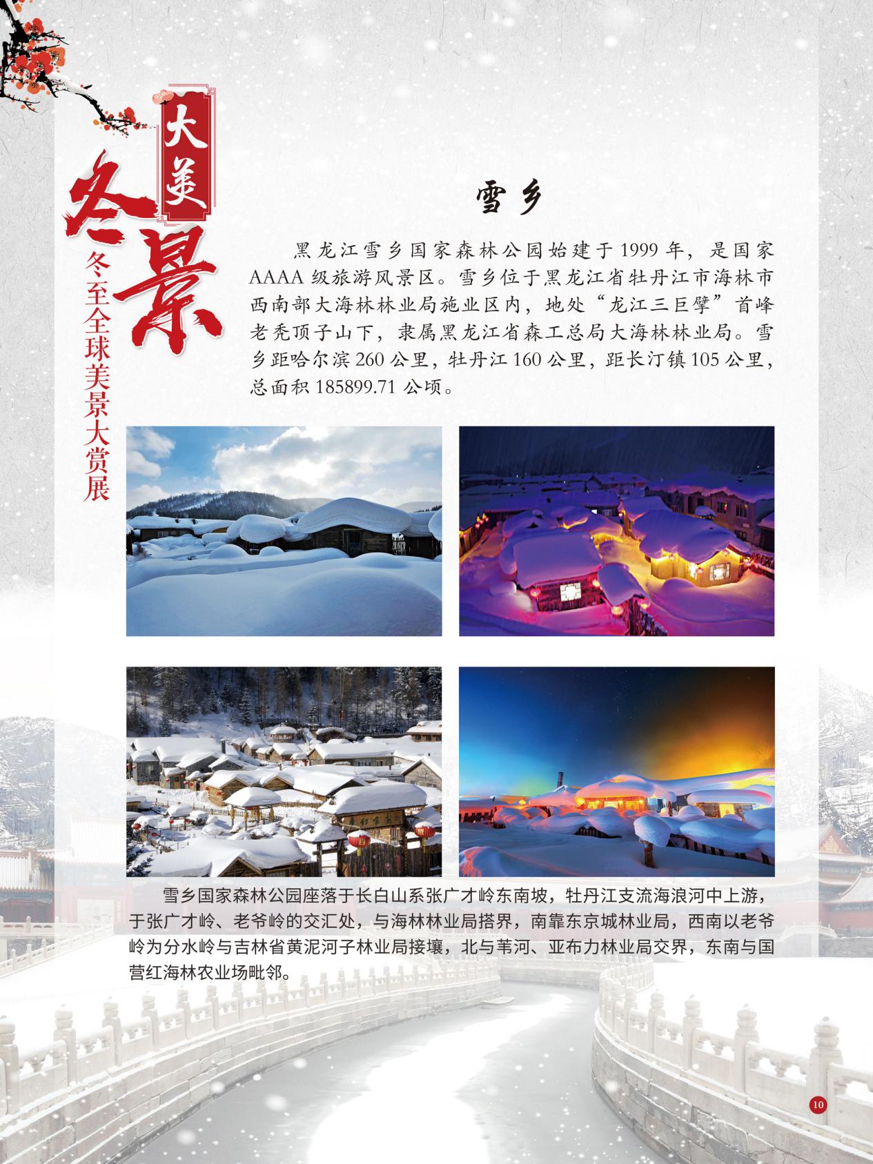 冬至是中国民间的传统节日,于每年公历12月21日至23日交节。冬至是四时八节之一,被视为冬季的大节日,在古代民间有“冬至大如年”的讲法,所以古人称冬至为“亚岁”或“小年”。冬至兼具自然与人文两大内涵,是二十四节气中一个重要的节气。 冰雪,是冬天谱写的一曲曲华丽乐章,是毛主席笔下的“北国风光,千里冰封,万里雪飘” ,是杜甫笔下的“窗含西岭千秋雪,门泊东吴万里船”, 是岑参笔下的“忽如一夜春风来,千树万树梨花开”,是柳宗元笔下的“孤舟蓑笠翁,独钓寒江雪”……地域不一样,冬天谱写的冰雪乐章也不一样,即便是同一处冰雪胜景,不同的人品出的也是不一样的味。冬天的美景是大自然的馈赠,本展览主要介绍冬至来临之后全球的冰雪美景奇观,带大家一起领略冬季的风采,探寻大自然的奥秘!