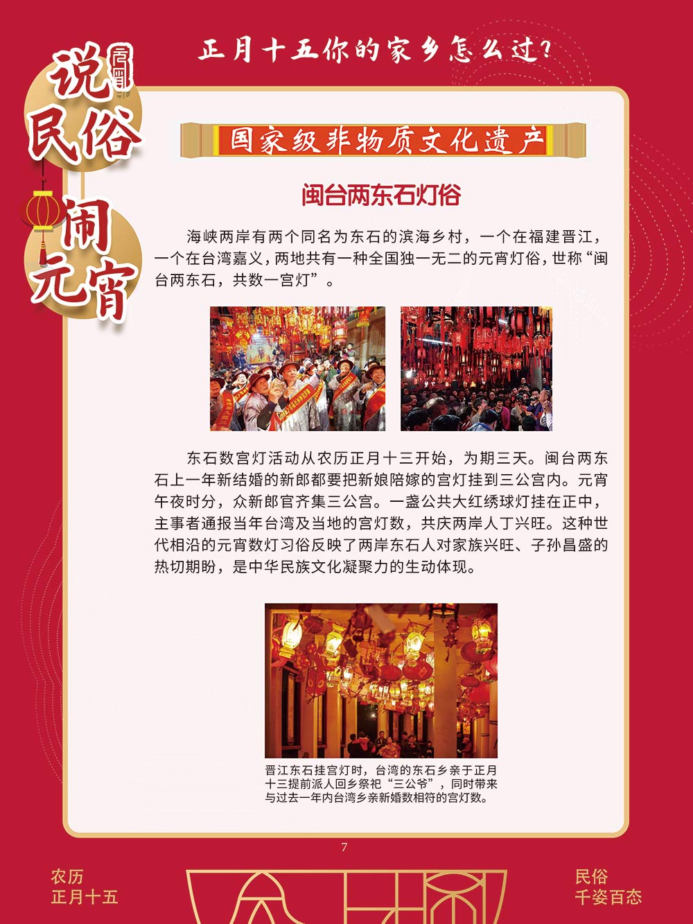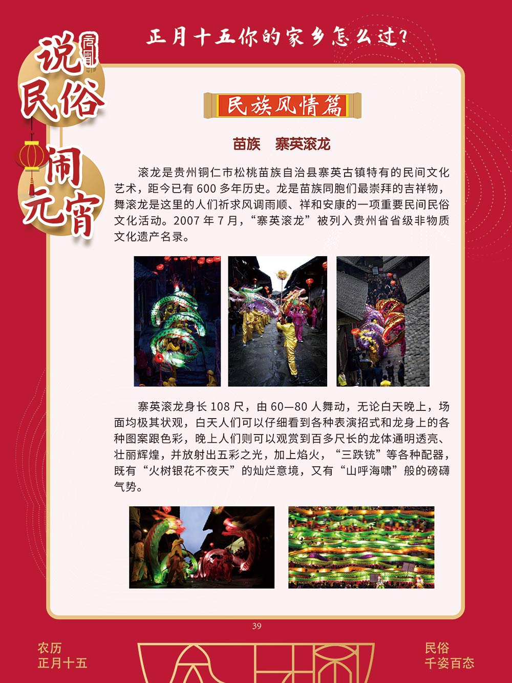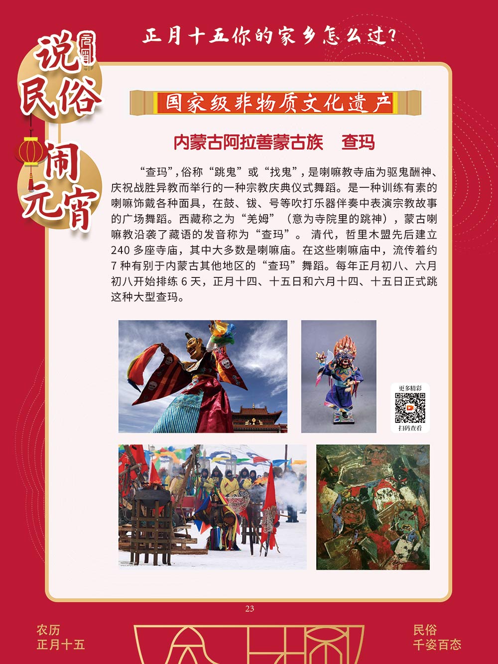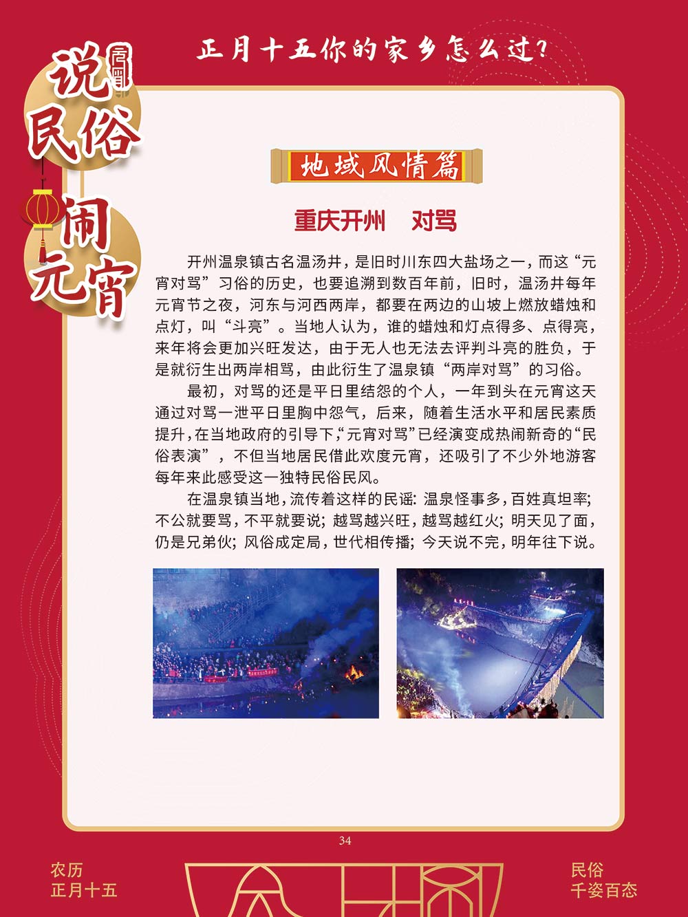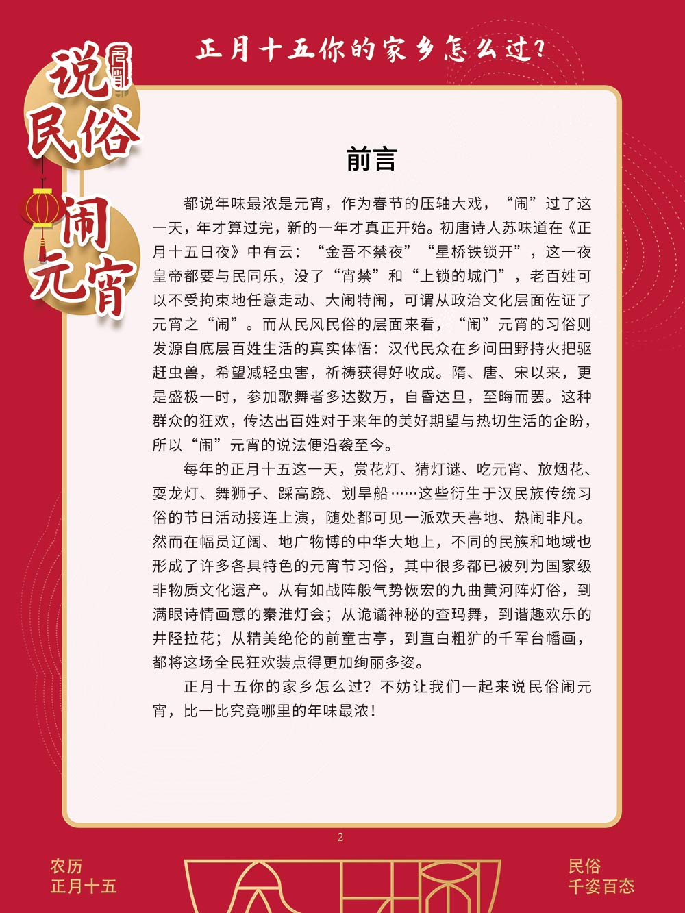 每年的正月十五这一天,赏花灯、猜灯谜、吃元宵、放烟花、耍龙灯、舞狮子、踩高跷、划旱船……这些衍生于汉民族传统习俗的节日活动接连上演,随处可见一派欢天喜地、热闹非凡。然而在幅员辽阔、地广物博的中华大地上,不同的民族和地域也形成了许多独具特色的元宵节习俗,其中很多都已被列为国家级非物质文化遗产。 这些从农耕文明孕育而来的岁时节俗,千百年来,孕育和滋养了博大而丰富的中国传统文化。它们经历了千百年漫长而复杂的发展变迁、代代相传,凝聚了中国劳动人民的智慧结晶,闪烁着中华民族的文明之光。 在西方节日流行的当下,我们对这些中华民族的灿烂民俗文化瑰宝又了解多少呢?是时候让灿烂的民俗真正“闹”起来,让传统节日融入当下的大众生活,在保留原有文化底蕴的基础上,从内容和形式上注入更符合现代潮流的创新元素,唤回年轻人们的关注。 正月十五你的家乡怎么过?不妨借此元宵佳节之际,让我们一起来说民族闹元宵,比一比究竟哪里的年味最浓!