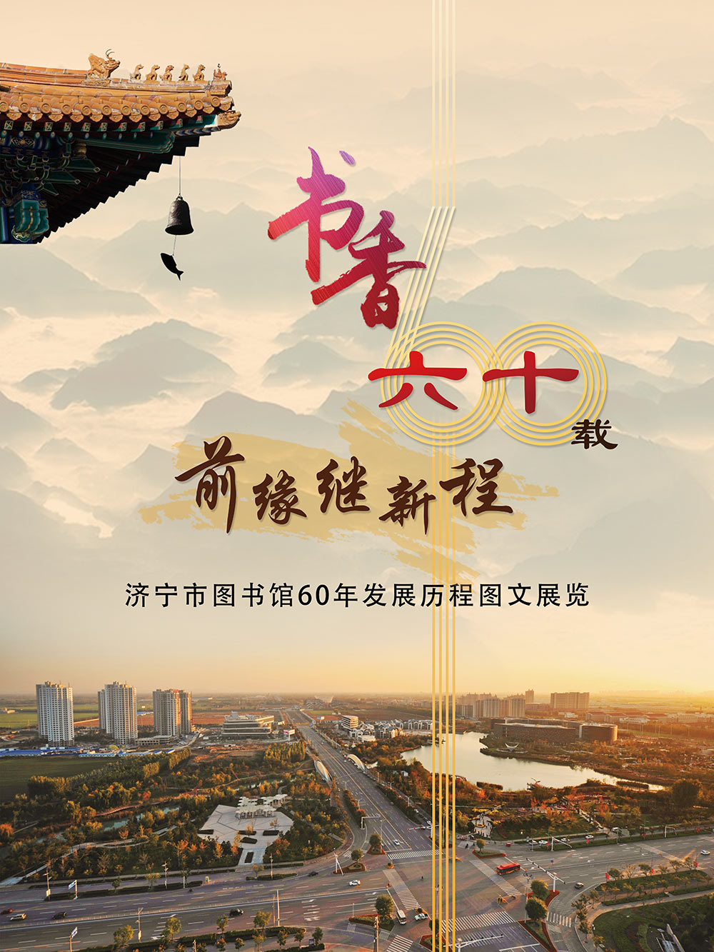 《书香六十载 前缘继新程——济宁市公共图书馆建成60周年》 主题展览分为三个部分:“时光之旅”“续前缘”“阅见未来继新程”。六十年的砥砺时光,蕴藏着济宁图书馆人以“读者第一,服务至上”的朴素情怀和“书香致远,墨卷至恒”的远大理想!本展览以图片的形式介绍济宁图书馆的变迁史,它基于科学、创新、发展为理念,用一种全新的理念为读者打造良好的阅读环境。